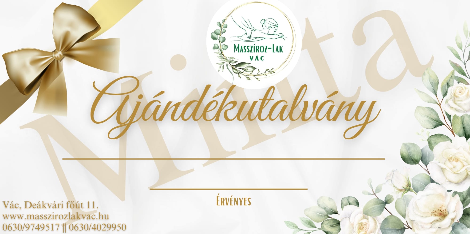 Az ajándékutalványt szalonunkban előre egyeztett időpontban vagy Email-ben nyomtatható verzióban is meg lehet vásárolni.